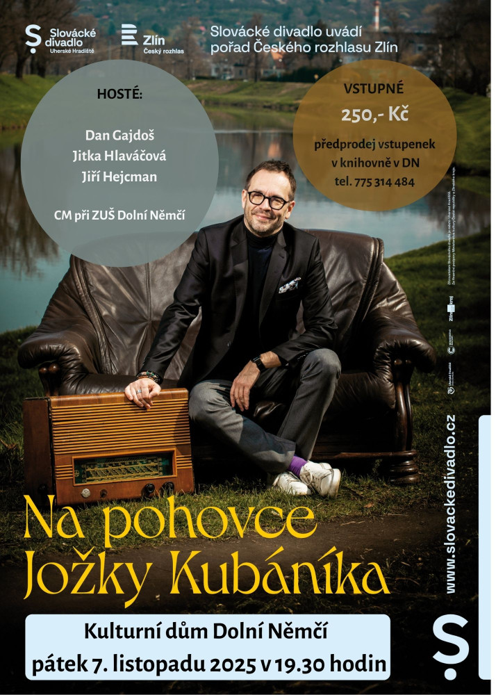 ArchivVyvěšeno dne: 29.9.202518.11.2025Obecní úřad Na pohovce.jpg Kulturní dům Dolní Němčí – Na pohovce Jožky Kubáníka